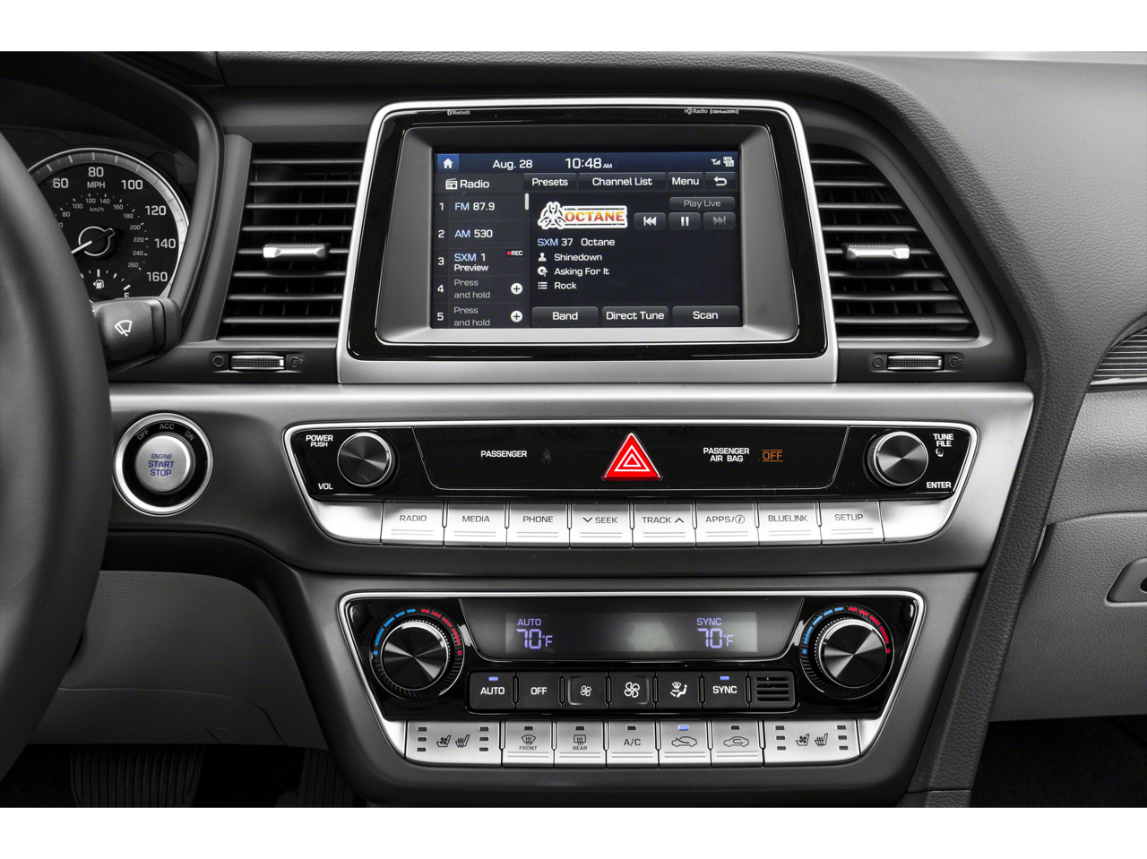 - Radio: AM/FM/HD/SiriusXM/MP3 Infinity Prem Audio -inc: navigation system, 8" high-resolution color touchscreen, HERE HD Traffic (real-time traffic service), SiriusXM Travel Link (complimentary trial), HD Radio technology w/multicasting, Apple CarPlay, Android Auto, integrated Bluetooth w/phonebook transfer, 9 Infinity speakers (2 front-door-mounted, 2 tweeters, 4 rear w/coaxial mounted tweeters and subwoofer), iPod/USB and auxiliary input jacks, wireless phone charging and 400-watt external Infinity amplifier