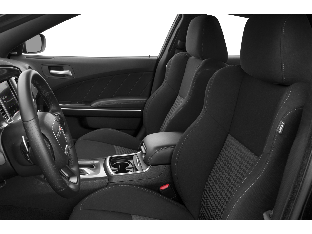 Spacious and sporty, our R/T cabin makes driving more fun with sport-bolstered houndstooth cloth seats, eight-way power for the driver, a leather-wrapped steering wheel, dual-zone automatic climate control, bright pedals, keyless access/ignition, and remote start. Impressive digital advantages include an 8.4-inch Uconnect touchscreen, WiFi compatibility, Android Auto/Apple CarPlay, Bluetooth®, and Alpine audio. In addition, a full-size trunk brings practicality to our Charger's performance.