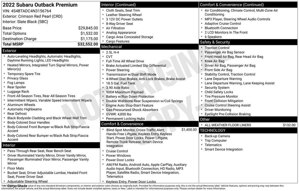 - Vehicle Name: Subaru Outback