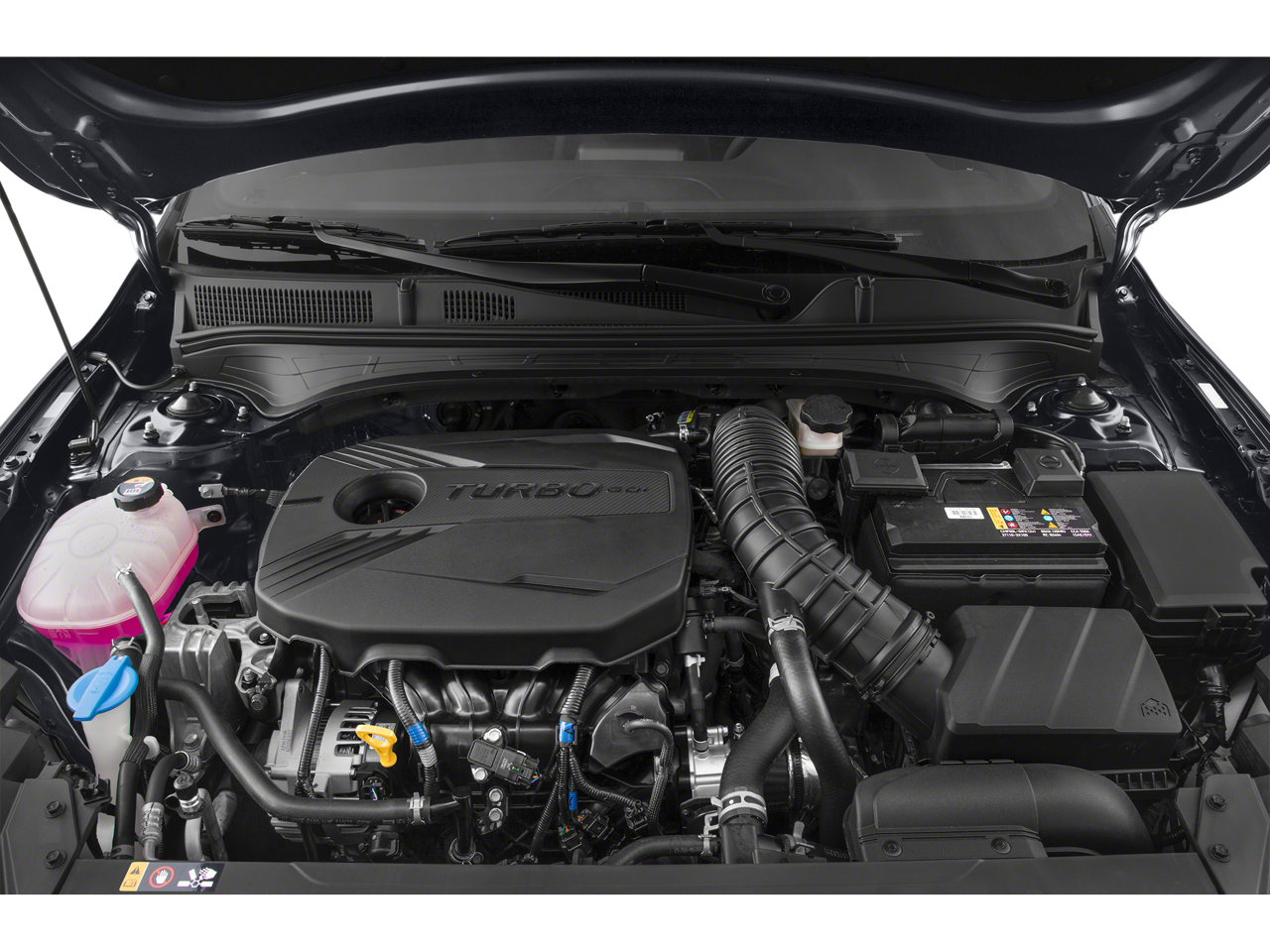 Our GT cockpit helps keep your spirits up with heated SynTex front sport seats, a leather-wrapped flat-bottom steering wheel, dual-zone automatic climate control, alloy pedals, keyless entry, and pushbutton ignition for quick getaways. Getting connected is easy with a 10.25-inch touchscreen, full-color navigation, Apple CarPlay, Android Auto, Bluetooth®, and a Harman Kardon audio system that rewards you with a revved-up soundtrack.
