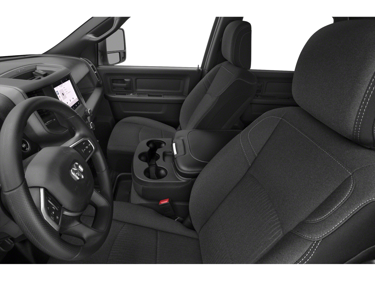 Our Tradesman cabin welcomes you with supportive work-ready seats, a tilt-adjustable steering wheel, air conditioning, power accessories, cruise control, pushbutton ignition, a 12V power outlet, door-sill scuff pads, and a 3.5-inch driver display. You can also enjoy easy connections with a 5-inch touchscreen, Bluetooth®, voice recognition, and a six-speaker sound system. It's a comfortable setting for drivers who keep busy!