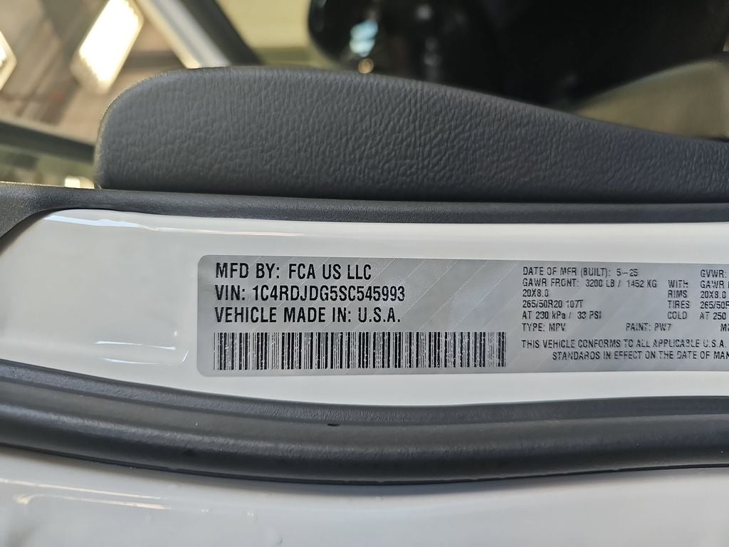 Strong and stunning, our One Owner, Accident Free 2025 Dodge Durango GT Plus AWD gets family trips off to a great start in White Knuckle! Motivated by a 3.6 Liter Pentastar V6 supplying 295hp to a paddle-shifted 8 Speed Automatic transmission with a dedicated Sport mode. A rear load-leveling suspension helps you handle life's challenges as this All Wheel Drive SUV achieves nearly 24mpg on the highway with a dominating Dodge design. Exterior highlights include a power sunroof, LED lighting, a performance hood with built-in heat extractors, 20-inch alloy wheels, roof rails/crossbars, and a power liftgate.