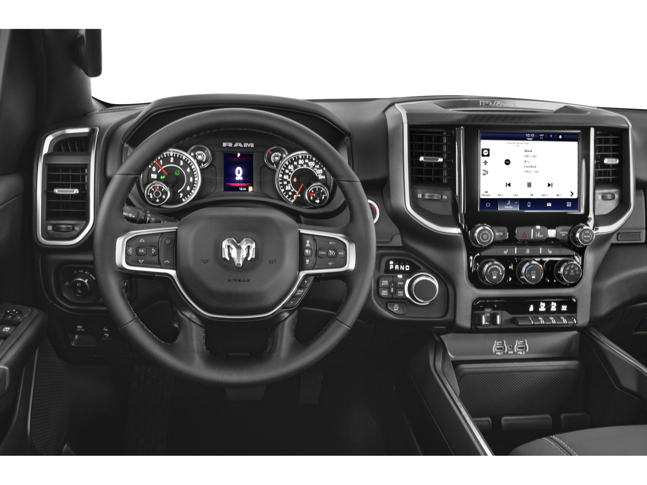 Step inside our Big Horn/Lone Star cabin with the Level 2 Pack and feel the high quality features. Heated cloth front seats, eight-way power for the driver, a heated leather steering wheel, dual-zone automatic climate control, power-adjustable pedals, a power rear window, a 12-inch touchscreen, a 7-inch driver display, full-color navigation, WiFi compatibility, nine-speaker audio are all there for your convenience. Apple CarPlay, Android Auto, Bluetooth®, and voice control enhance infotainment even further.